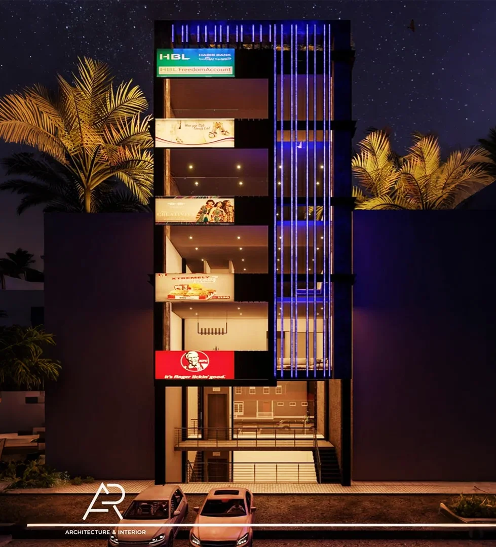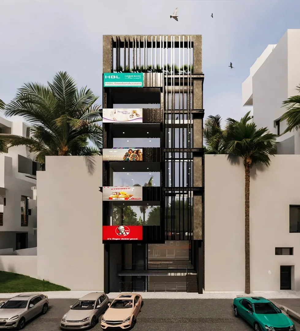 Design concepts for a multi-purpose project in Faisalabad with construction underway to deliver integrated offices and apartments.